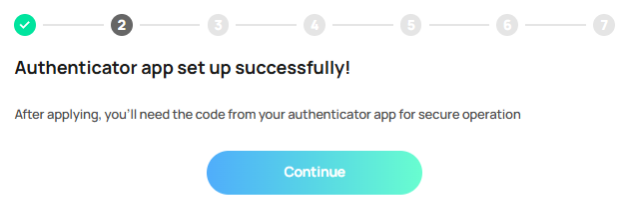 To set up Two-Factor Authentication (2FA), you would need to download an authenticator app, such as Google authenticator. Once you have the app installed simply press “Continue” to proceed with the setup process