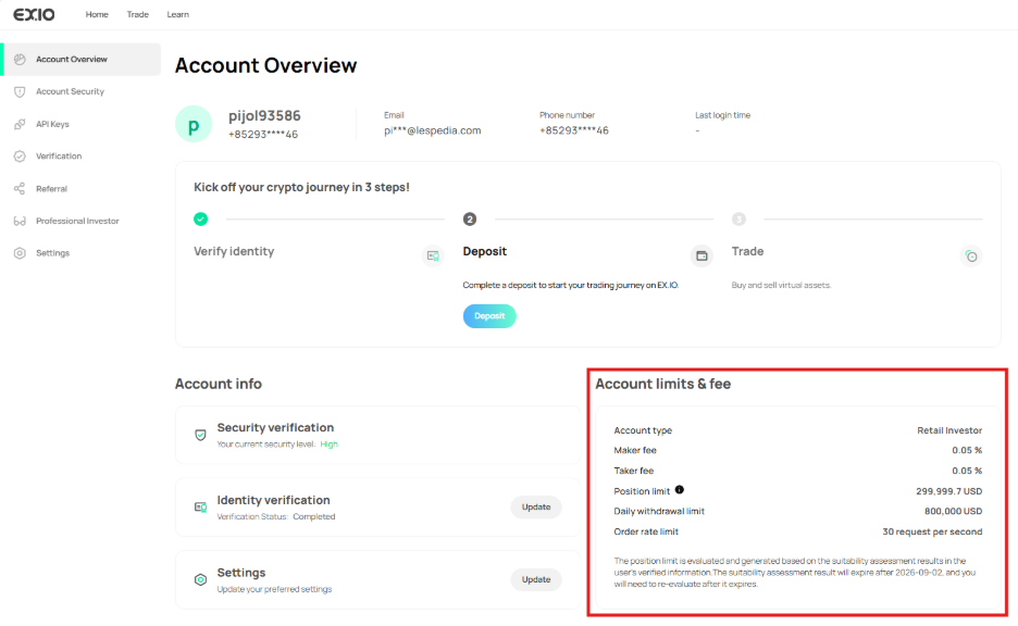A position limit defines the maximum number of virtual assets (“VA”s) you are allowed to hold in all your accounts (e.g. custody account, trading account & etc.). This is to ensure the exposure to VAs is reasonable according to your profile.