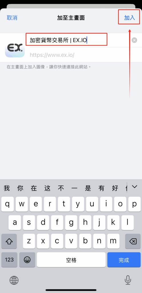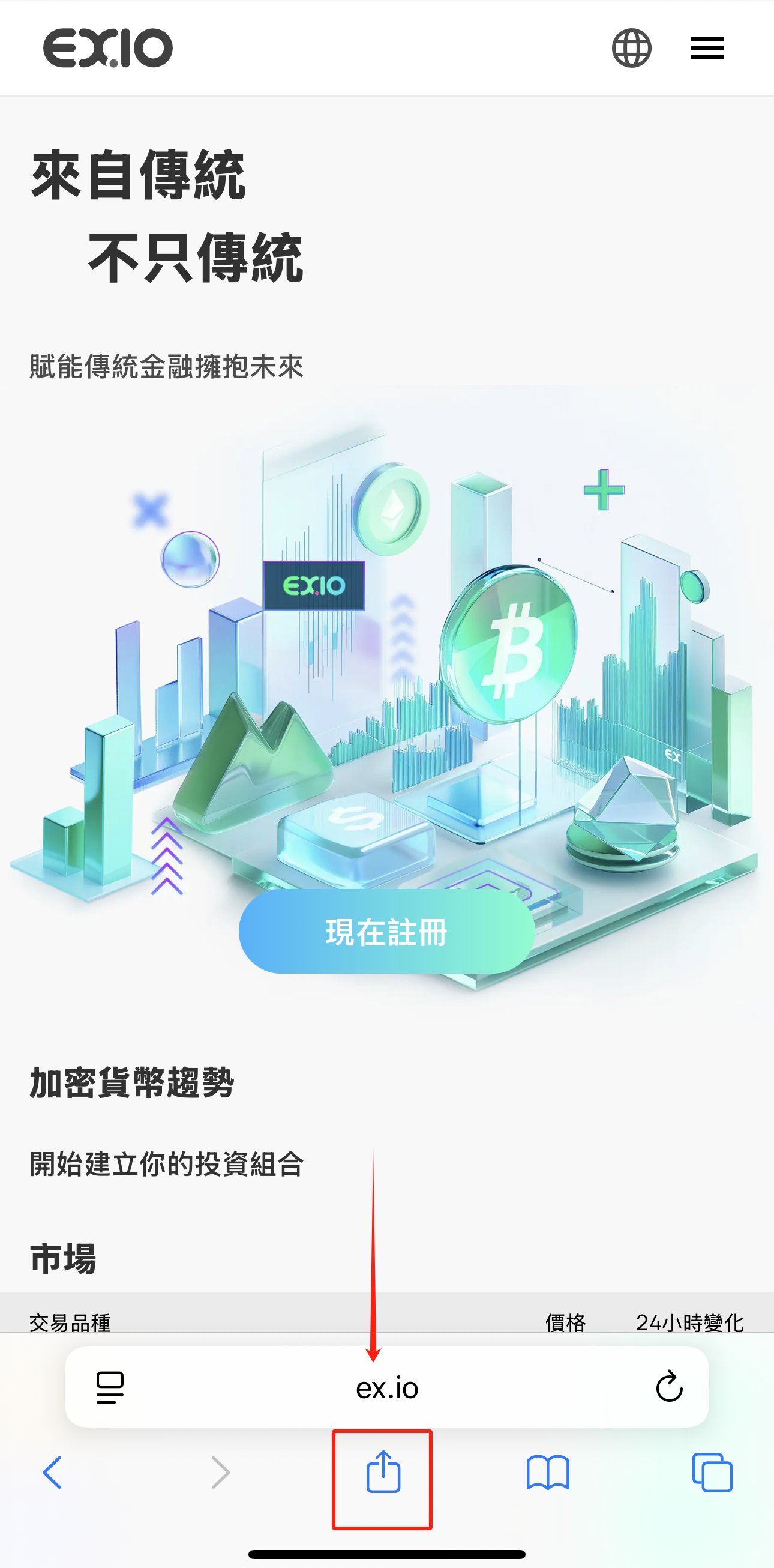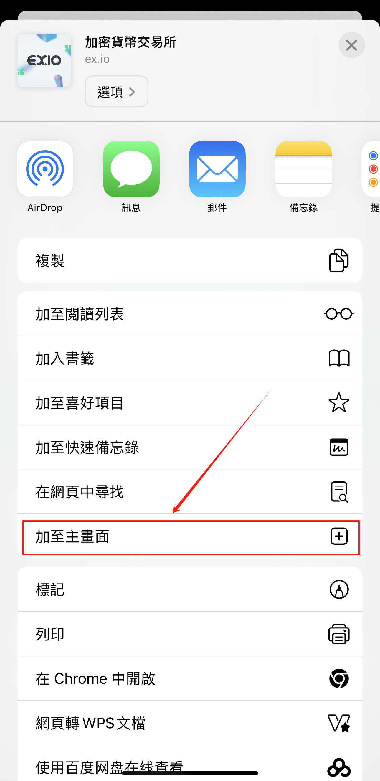 透過以下步驟,您可將 EX.IO 網站直接添加到手機主屏幕,方便快速訪問: