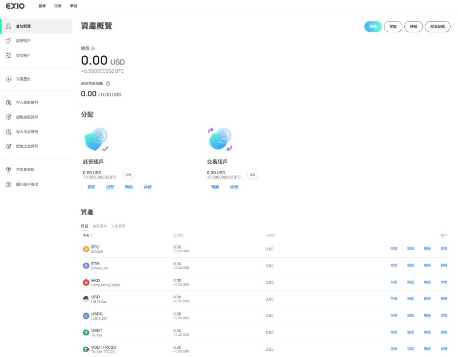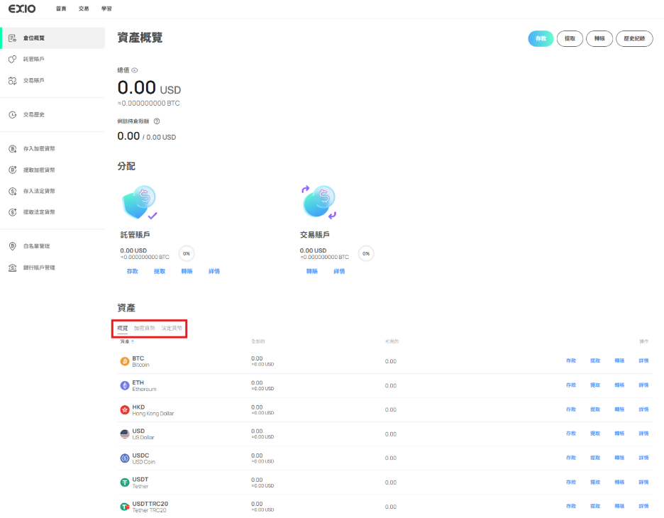在資產概覽頁面,您可以一覽所有帳戶的總數,包括托管帳戶和交易帳戶。