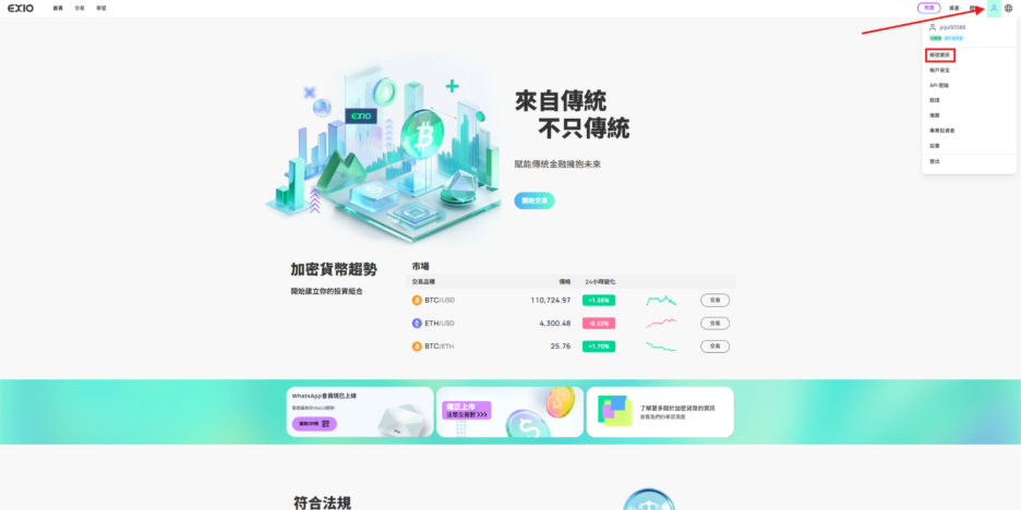 要查看帳戶限額和費用,請將鼠標懸停在頁面右上角的數字圖標上,點擊「帳號資訊 」。